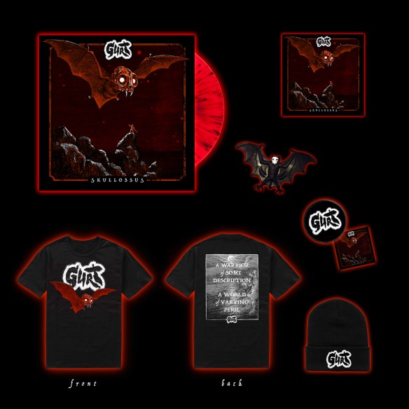 The album shall be available on Digipack CD, Limited Edition black and red ‘splatter’ Vinyl as well as digital download. Alongside these shall be a brand new shirt design and ‘Megapack’ which includes exclusive beanie hat, Patch, sticker and SKULLOSSUS toy!